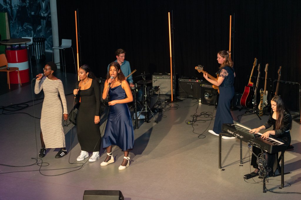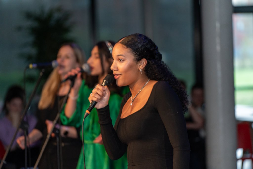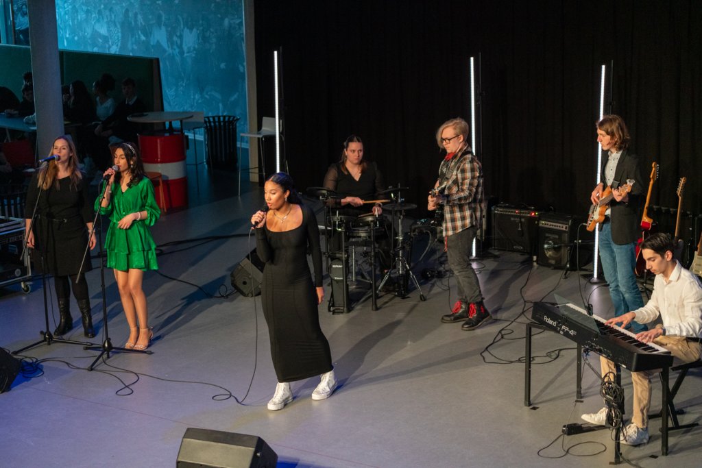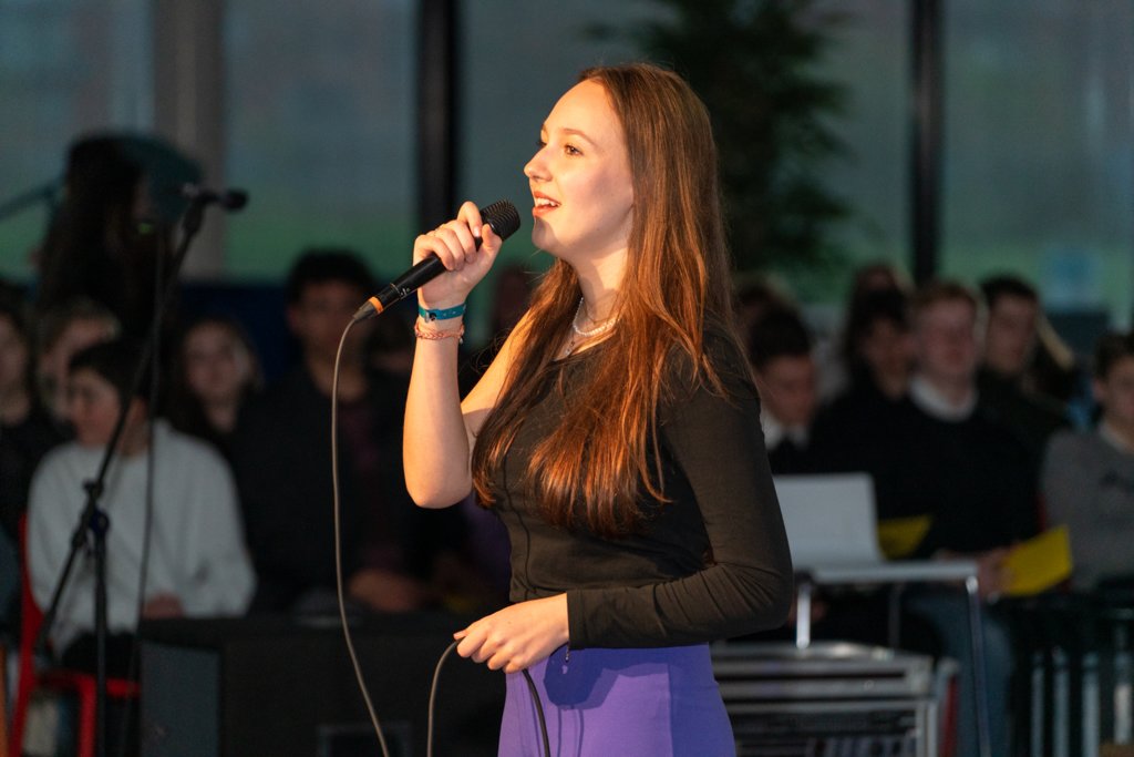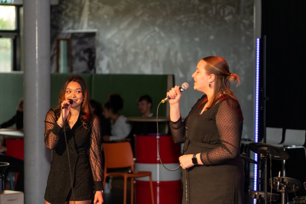 De avond werd afgesloten met het grote koor, waar ook de muziekleerlingen van 4 havo, 4 en 5 vwo meezongen. Gezamenlijk brachten deze 88 leerlingen een medley van Motown-nummers onder begeleiding van ‘Stijn en de Gummiberen’.