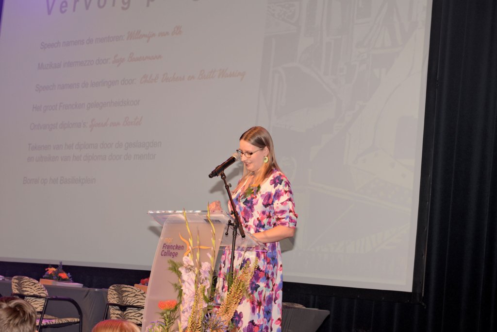 Iedereen - leerlingen, docenten, mentoren en ouders - heeft genoten van de speeches, het groot Frencken-gelegenheidskoor en natuurlijk de oneliner bij het tekenen van het diploma. Aansluitend hebben we in de foyer en op het Basiliekplein geproost met elkaar. Het harde werken van iedereen is beloond. Gefeliciteerd!