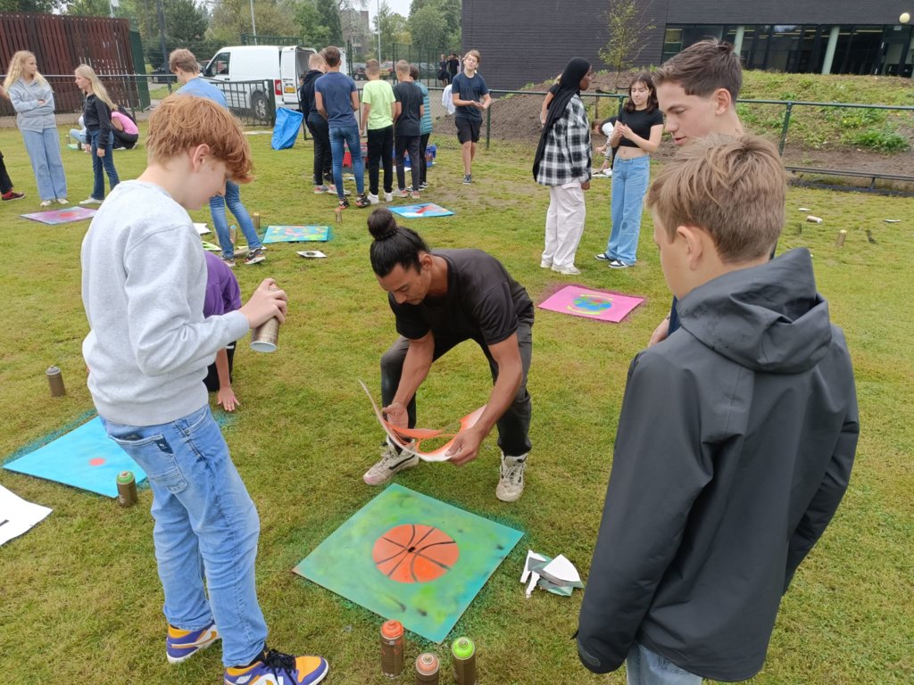 De onderbouw kreeg een iets uitgebreidere introductie. Zo kwam klas 2 in actie met graffiti workshop op een heerlijke actieve woensdag, waar ook ruimte was voor bowling! Donderdag