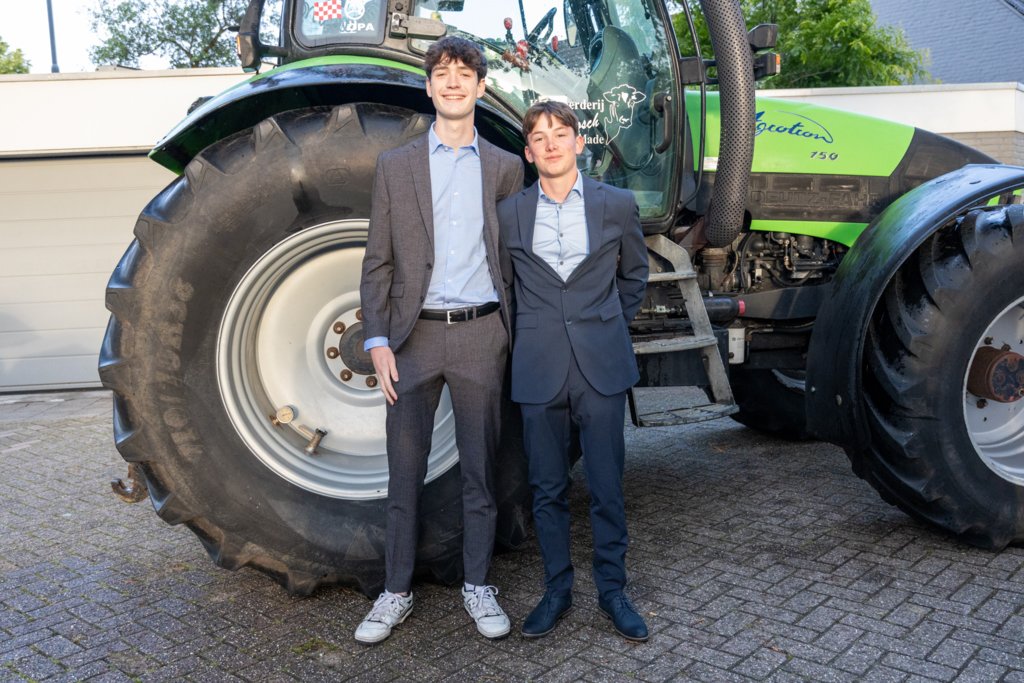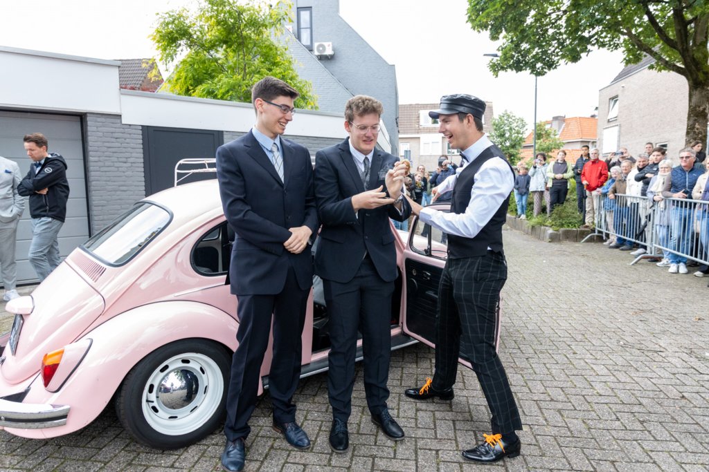 Prachtig gekleed en geheel in stijl verschenen de 5H- en 6V-leerlingen vanuit uiteenlopende voertuigen op de rode loper bij La Cantina in Oosterhout. Van fiets tot tractor, van motor tot bus en van sportwagen tot paard en wagen!