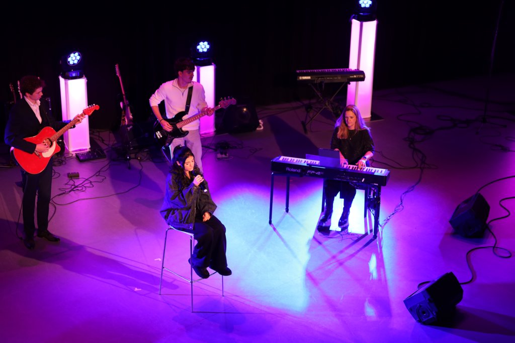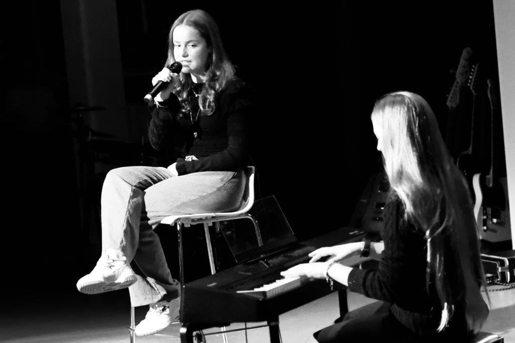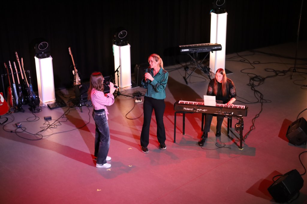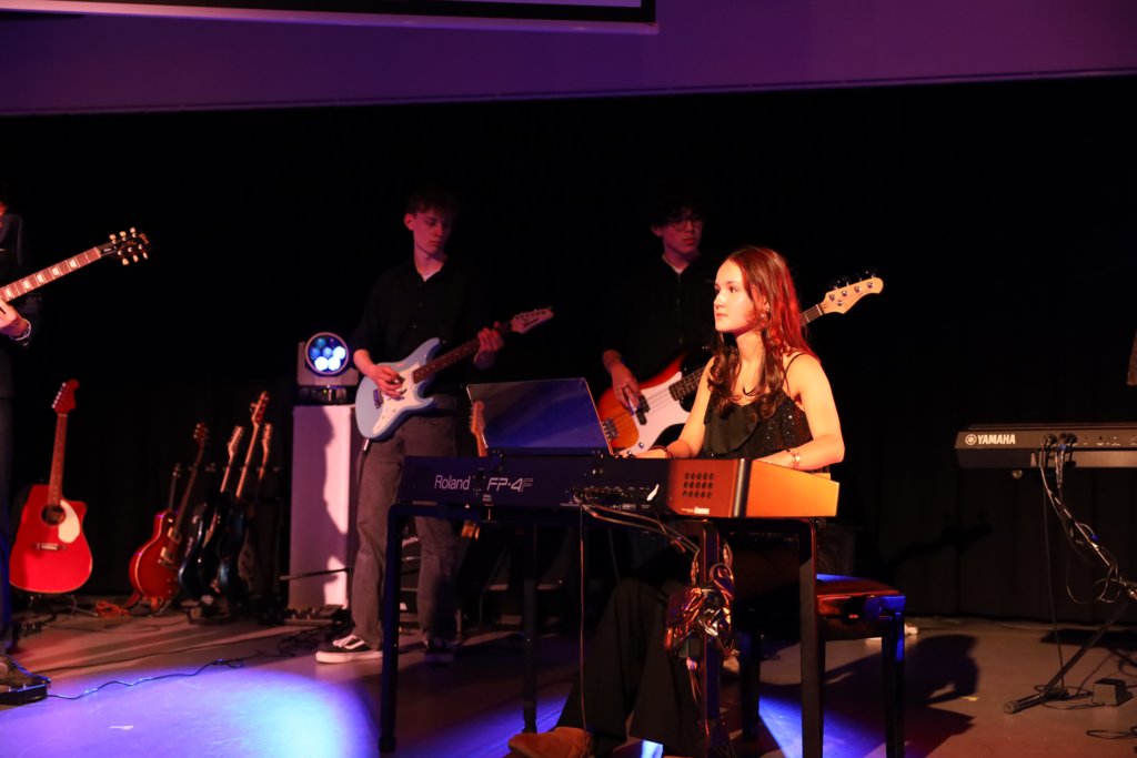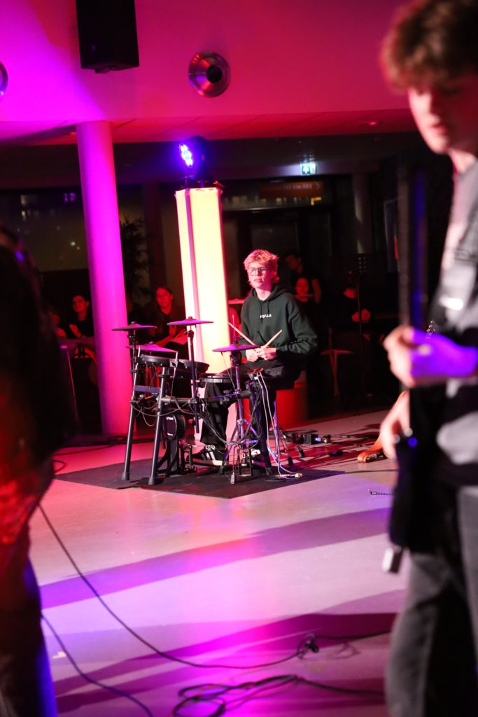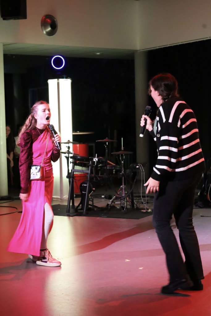 De muziekleerlingen uit 5 vwo hebben de hele avond georganiseerd. Denk aan het werven van leerlingen, audities houden, kaartverkoop, techniek, programmaboekjes, PR, tot aan de drankjes in de pauze.