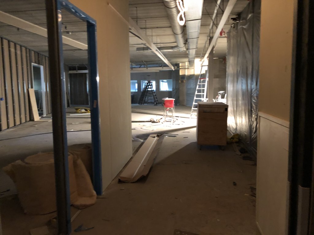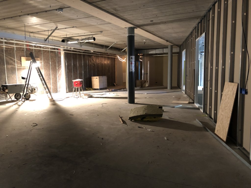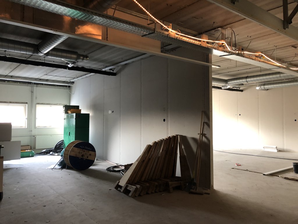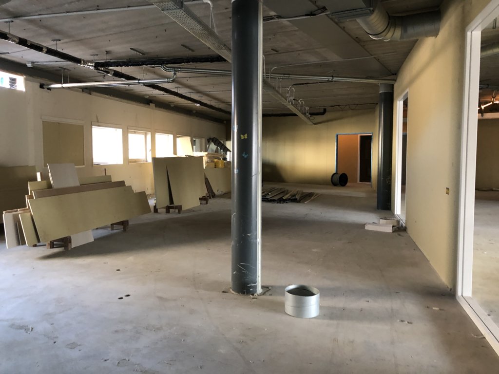 Nu we onze weg in onze nieuwbouw gevonden hebben, kijken we vooruit naar het tweede deel van het bouwproject. Enerzijds is dat de herinrichting van gebouw A: daar zijn de oude wanden inmiddels uit gehaald en worden de contouren van de nieuwe lokalen zichtbaar.