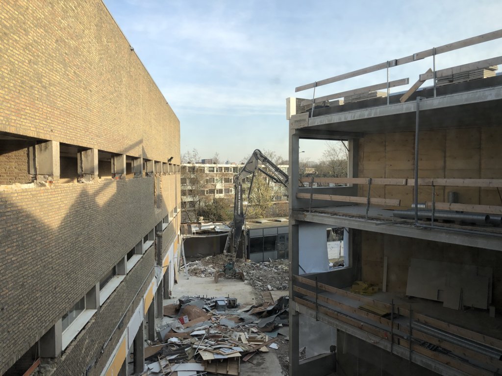 Anderzijds is dat de sloop van gebouw C. De sloop is deze week begonnen en duurt ongeveer twee weken. Het slopen gebeurt vanuit het midden van gebouw C. We verwachten weinig tot geen overlast hiervan te hebben. Als gebouw C geheel gesloopt is, wordt onze nieuwe vleugel vanaf de Slotlaan mooi zichtbaar.