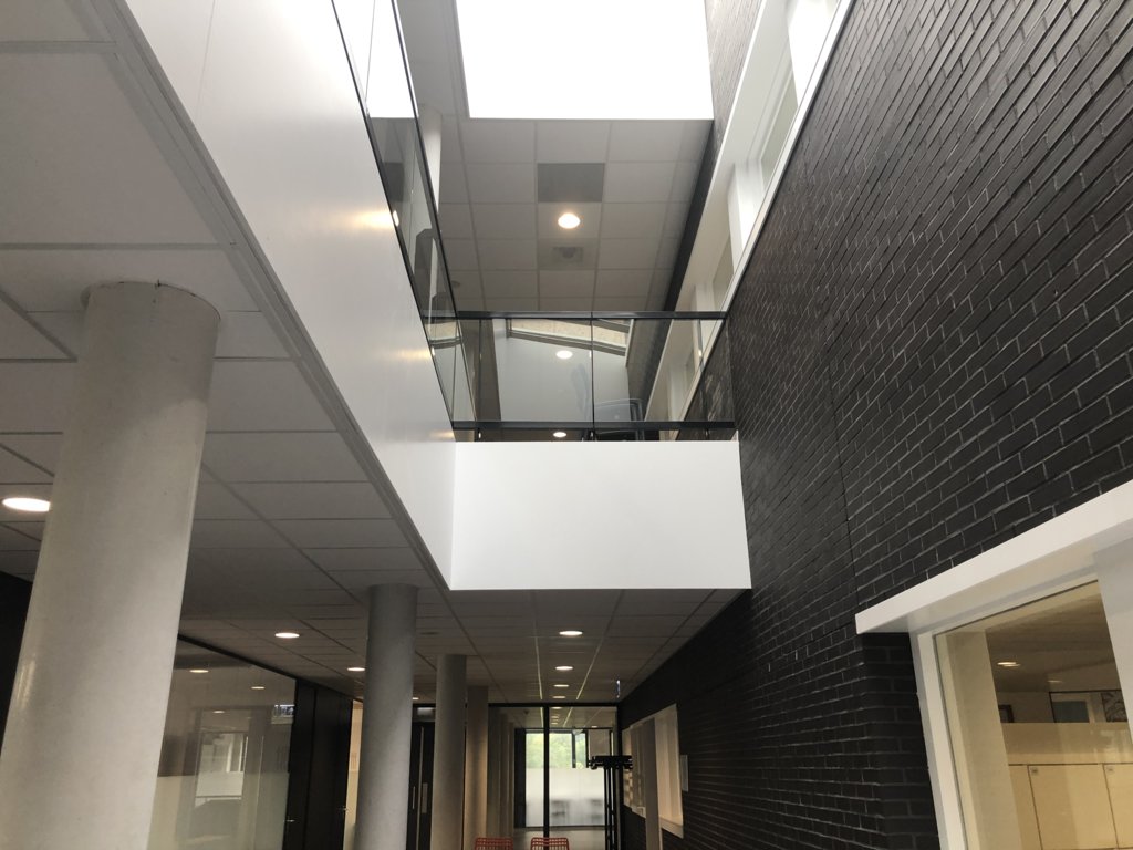 wiskunde en extra veel studienissen. “Eigenlijk vallen met het tweede gedeelte van de vernieuwbouw de puzzelstukjes pas echt op zijn plaats. De verbinding met de verdiepingen en gangen zijn logisch met de aula’s als middelpunt.“